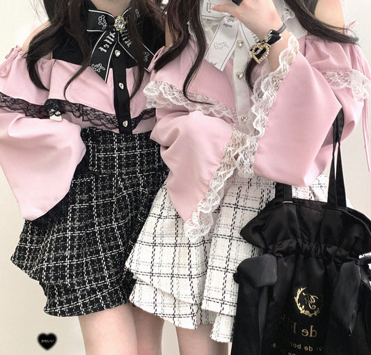 Kitten Bullet Love Bell 2.0 Pink Black White Shirt Blouse Top