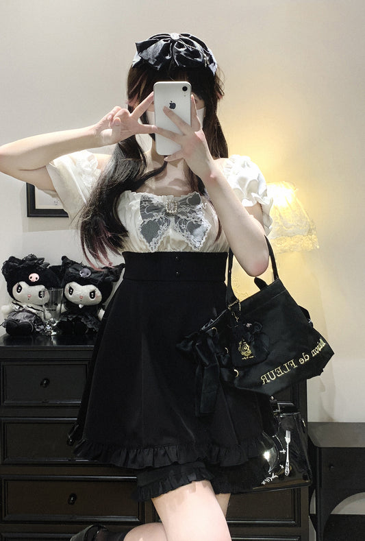 Kitten Bullet Love Princess Short Sleeve Black White Blue Blouse Top
