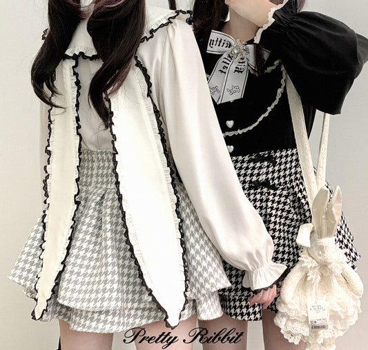 Kitten Bullet Milk Cake Rabbit Ears Black White Blouse Top