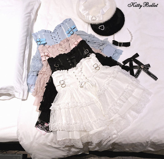 Kitten Bullet Rose Heart Palpitation White Pink Blue Black Skirt
