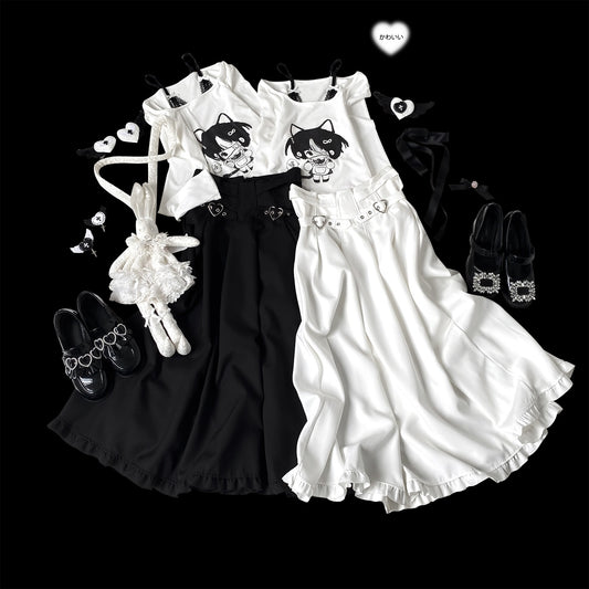 Kitten Bullet Prisoner Love Black White Long Skirt