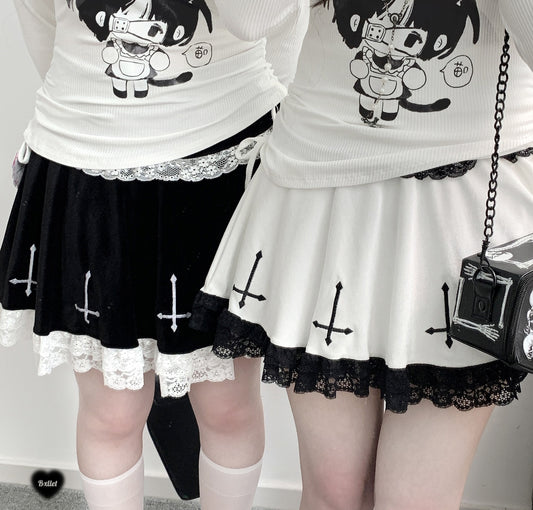 Kitten Bullet Jirai Kei Holy Cross Black White Velvet Skirt
