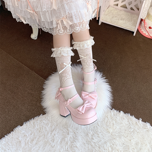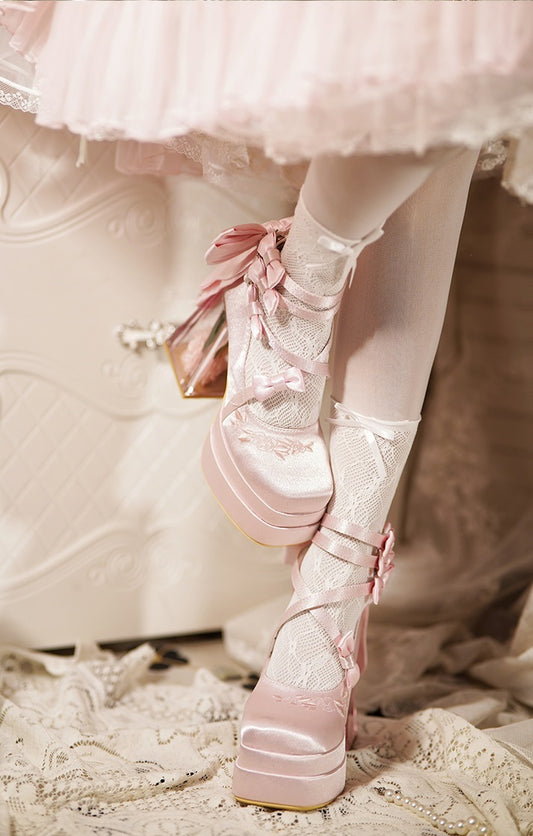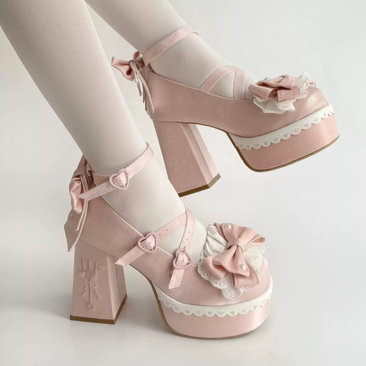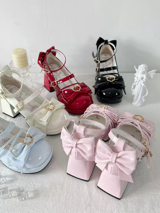 Love Letter Rose Heart Knot Lolita Black White Pink Blue Red High Heels Shoes