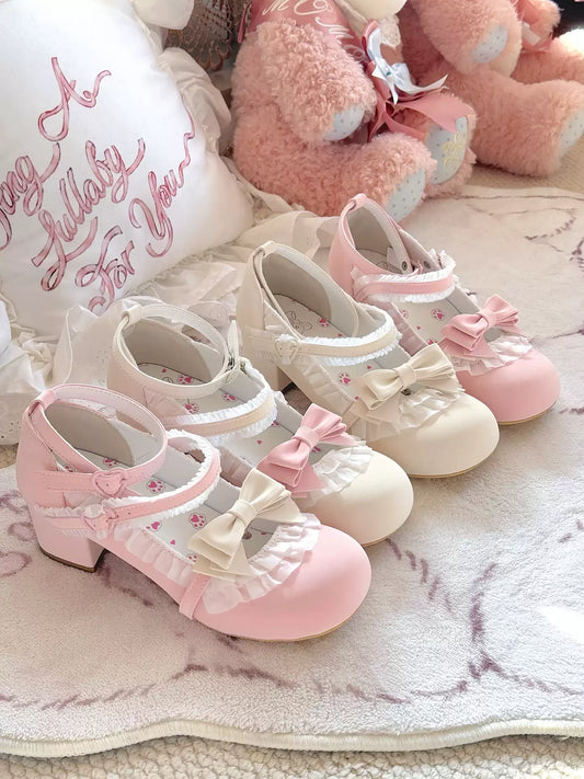 Moe Heart Tea Party Black White Cream Pink Blue Lolita High Heels Shoes