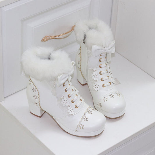 Sweet Princess Bow Decorated Fur Winter High Heels Boots