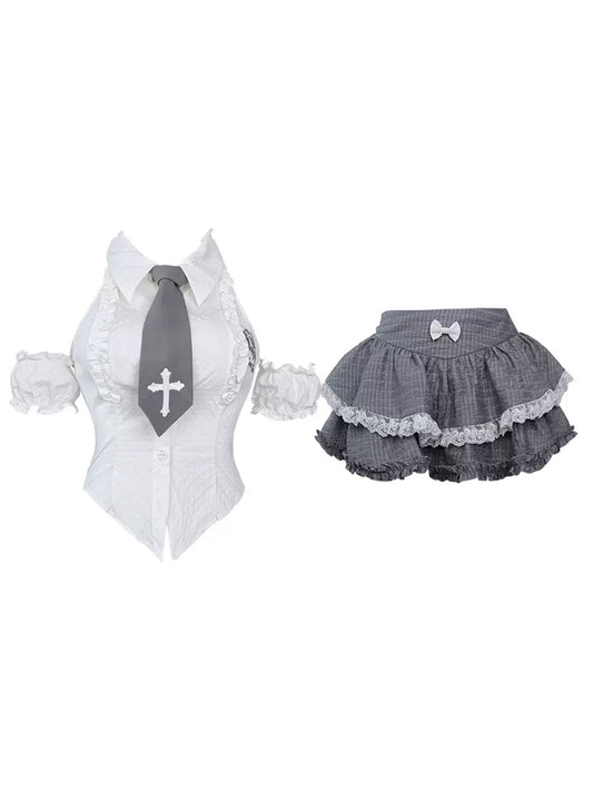 Serendipity Virtual Academy Vest Top & Gray Skirt Two Piece Set