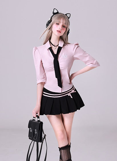 Serendipity Academia Coquette Pink Sweet Cute Blazer Shirt Mini Skirt Three Piece Set