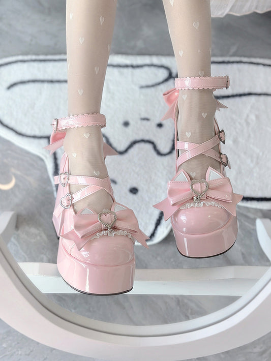 Love Song Cat Party Pastel White Pink Blue Black Lolita High Heels Shoes
