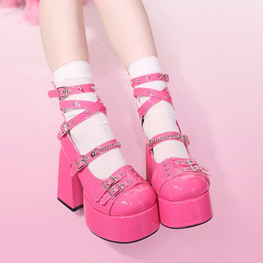 Transfer Student Thorns Cage EGL Punk Gothic Mary Jane Platform High Heels Shoes