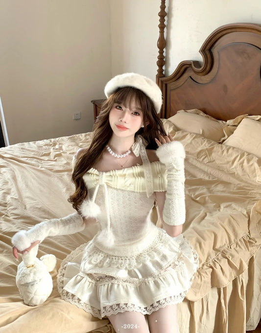 Monet Antique Doll Cream Sweater & Skirt Two Piece Set