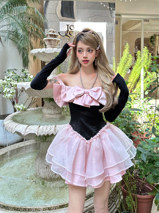 Monet Black Pink Princess Ruffled Party Diamond Halter Neck Dress