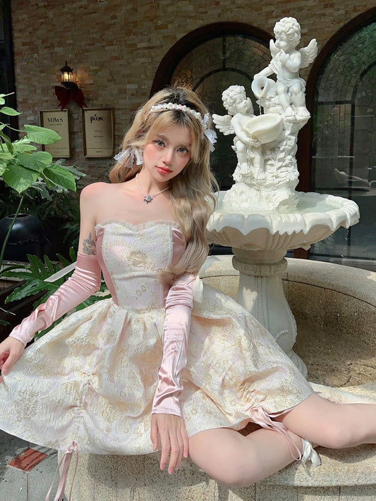Monet Vintage Princess Jacquard Pink Cream Strapless Dress