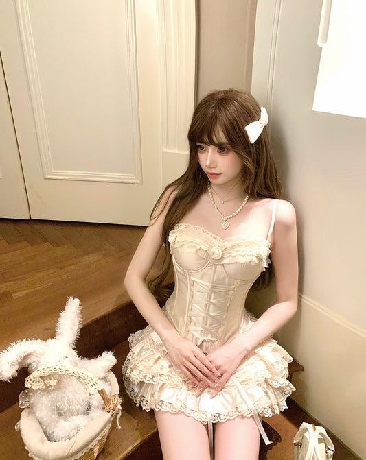 Monet Lace Sweet Dream Cream Corset & Skirt Two Piece Set