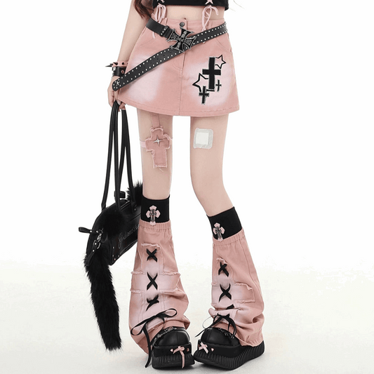 Crazy Girl Star Kitty Pink Black Gray Elastic Pants