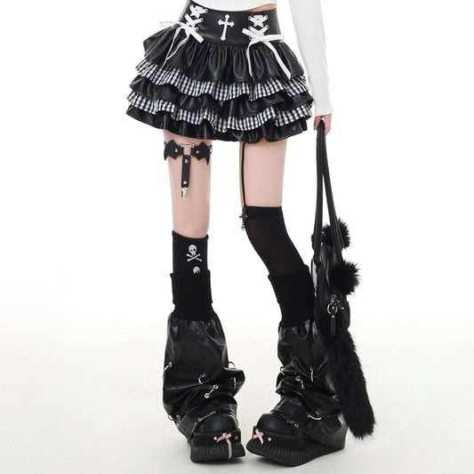 Crazy Girl Gossip Project Black Red Plaid Leather Skirt