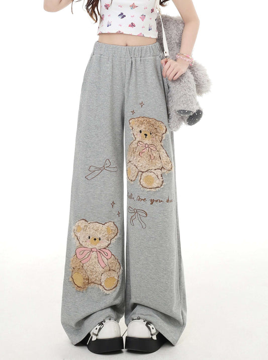 Crazy Girl Balloon Puppy Pink Black Gray Elastic Pants