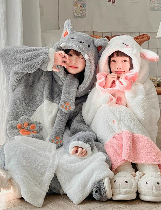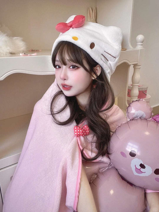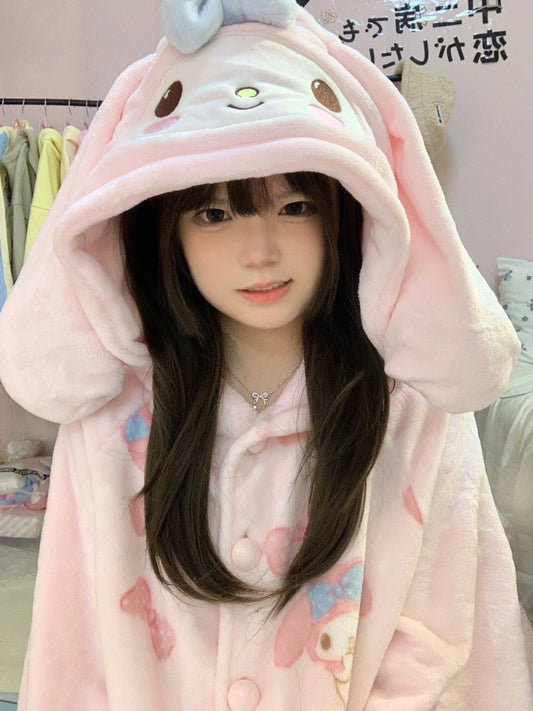 Cartoon Pink Kitty Melody Purple Devil CInnamon Dog Hooded Shawls Blanket Pajama Wrap