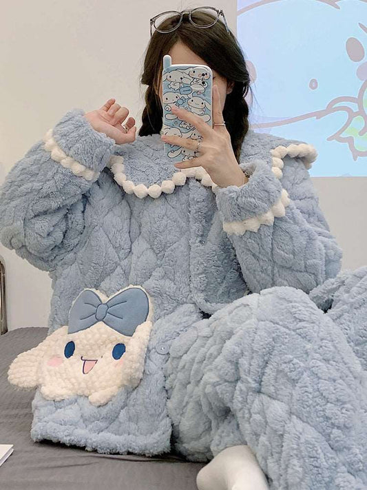 Blue Cinnamon Dog Plush Fleece Warm Winter Pajamas Sleepwear