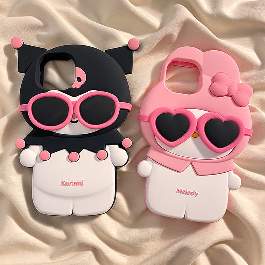 Cool Summer Melody & Purple Devil Sunglasses Cartoon Silicone iPhone Phone Case
