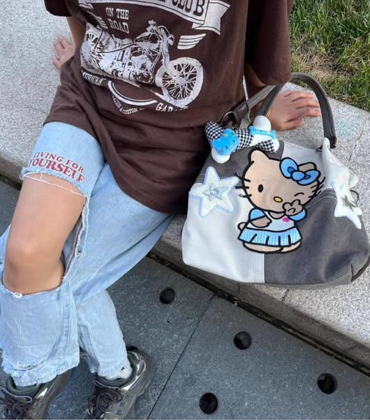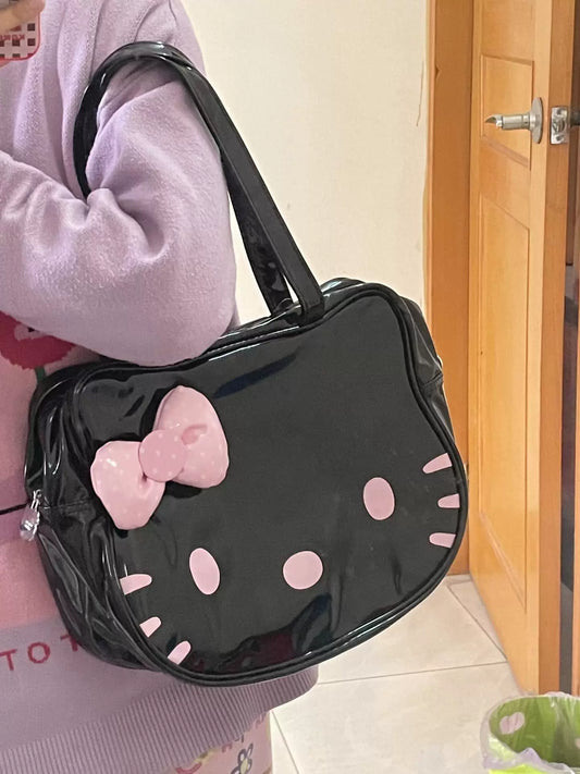 Y2K Black Brown Skin Kitty Shoulder Crossbody Messenger Bag