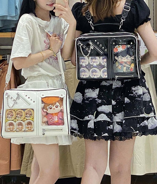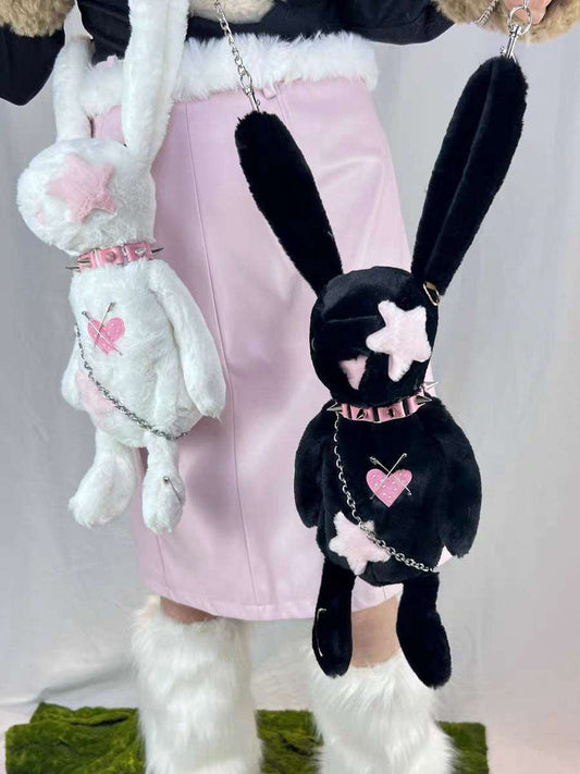 Black White Rabbit Doll Cute Plush Chain Star Love Collar Messenger Bag
