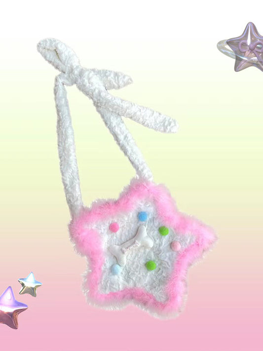 Y2K Star Bone White Pink Plush Handmade 3D Messenger Bag