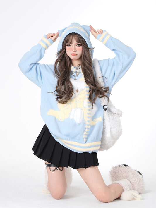 Young Eyes Black Pink Blue Purple Scarf Cat Ears Knit Hoodie Sweater