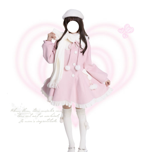 Platycodon Winter Sonata Pink White Wool Coat Scarf Two Piece Set