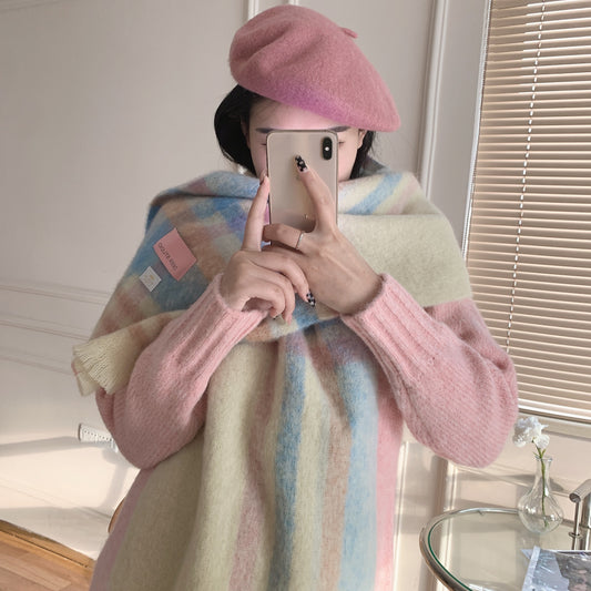 Sweet Plaid Cute Soft Pastel Shawl Scarf Scarves