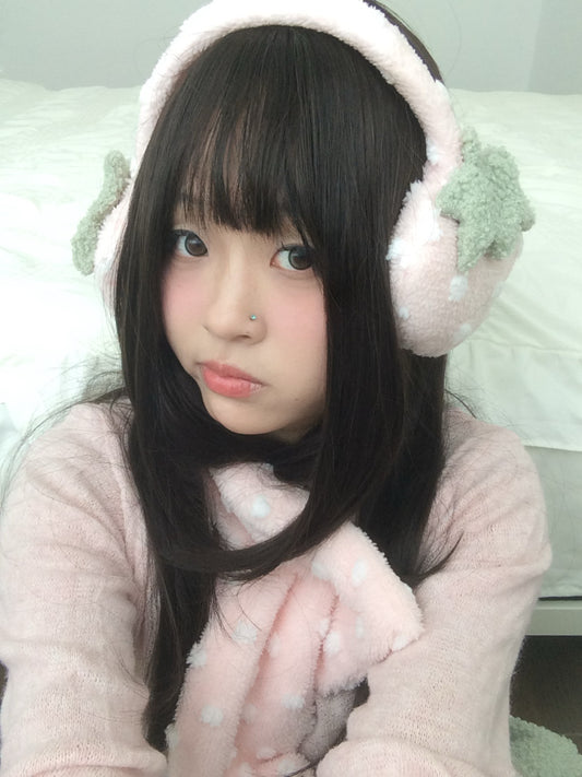 Popomelo Strawberry Earmuffs Scarf Gloves Winter Hats Set