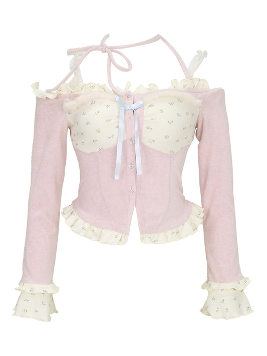 Serendipity Coquette Floral Patchwork Pink Shirt Top & Ruffled Cake Skirt Two Piece Set