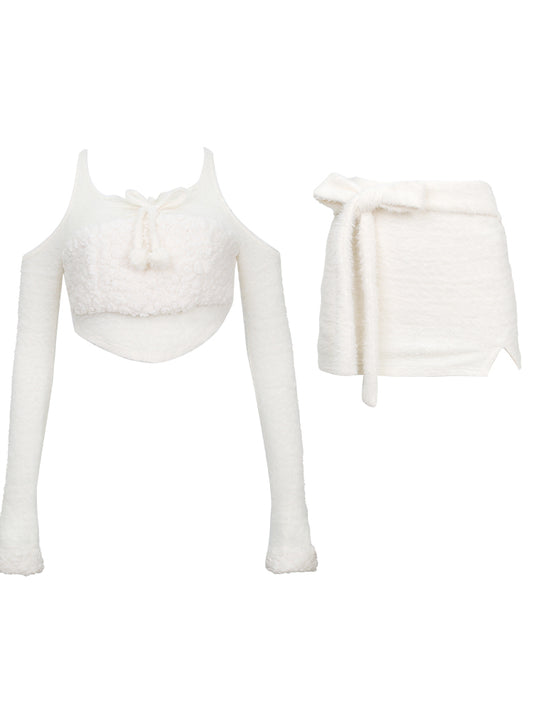 Serendipity Autumn White Polar Bear Plush Sweater Top & Mini Skirt & Hat Three Piece Set