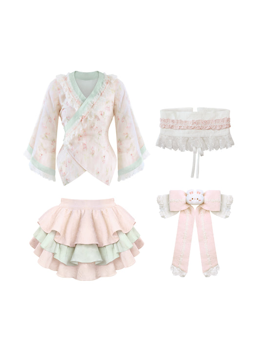 Serendipity Pink Dream Sakura Kimono Top & Skirt Two Piece Set