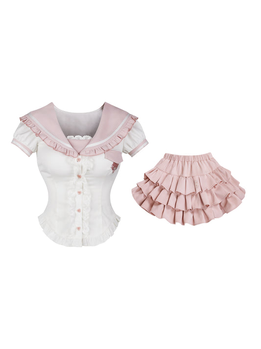 Serendipity College Department Rabbit Story Pink White Top & Skirt Two Piece Set