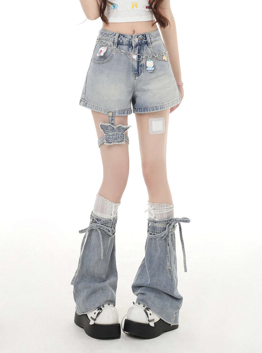 Crazy Girl Crushed Ice Blue Denim Shorts & Leg Warmers