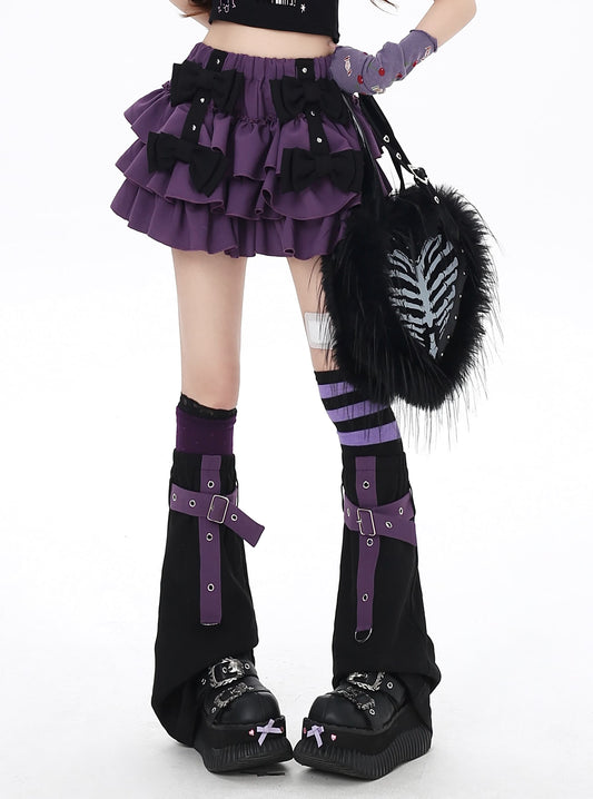 Crazy Girl Ancient Nana Bow Black Purple Skirt & Leg Warmers