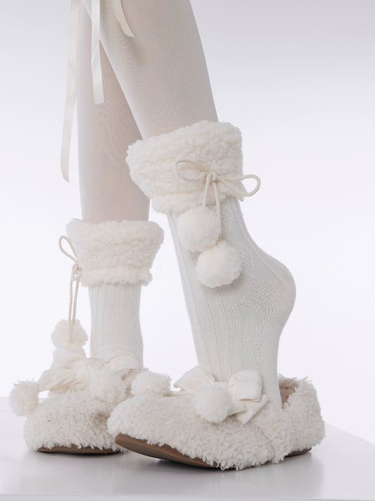 Winter Floor Wool Over the Knee Pompom Balls Socks