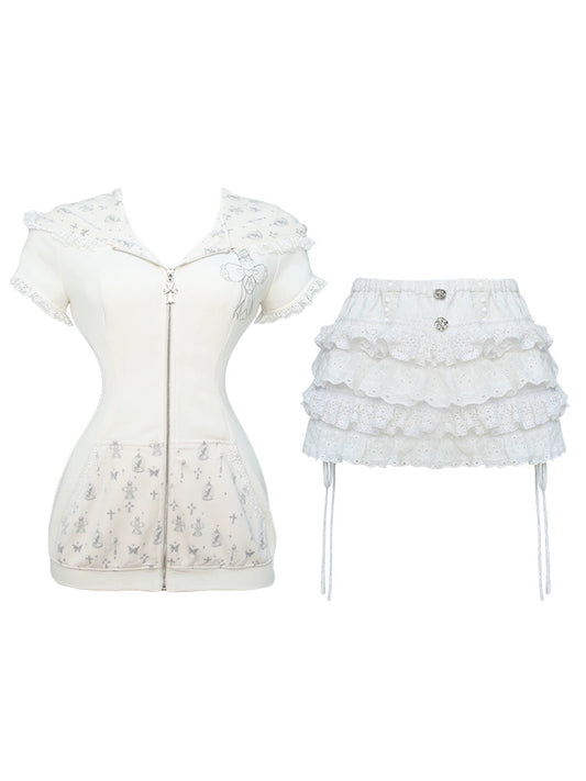 Serendipity Cross Rabbit White Hoodie & Skirt Two Piece Set