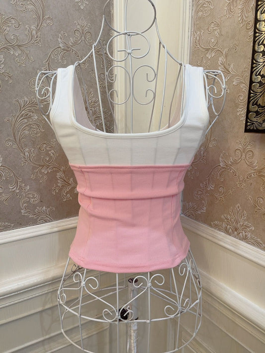Sweetheart Princess Cross Strap Pink Camisole Corset Top