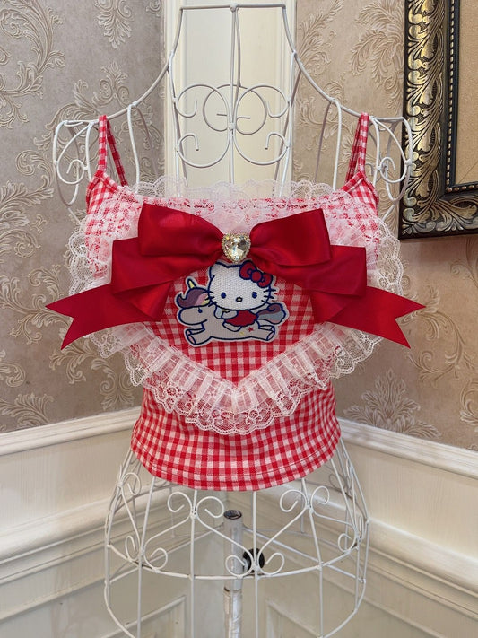 Sweetheart Princess Kitty Melody Little Stars Cat Plaid Red Pink Blue Camisole Top