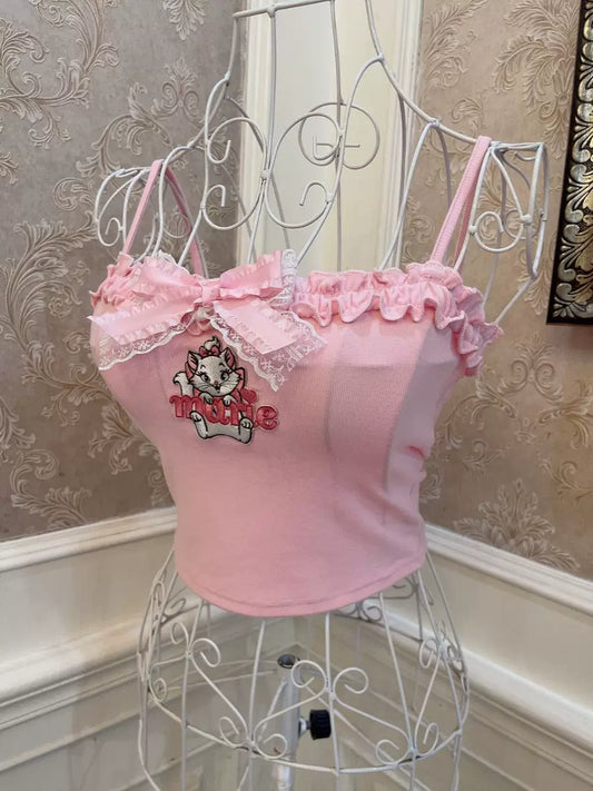 Sweetheart Princess Marie Cat Pink Lace Camisole Top
