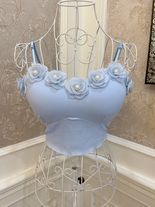 Sweetheart Princess Camellia Rose Pink & Blue Camisole Top