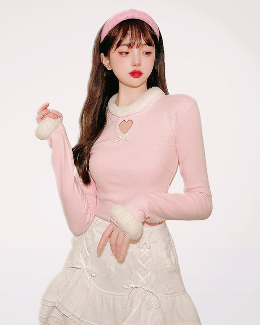 Cute Sexy Pastel White & Pink Fur Plush Sweater Top