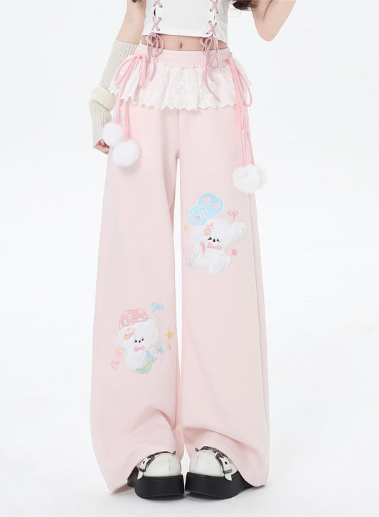 Crazy Girl Balloon Puppy Pink Black Gray Elastic Pants