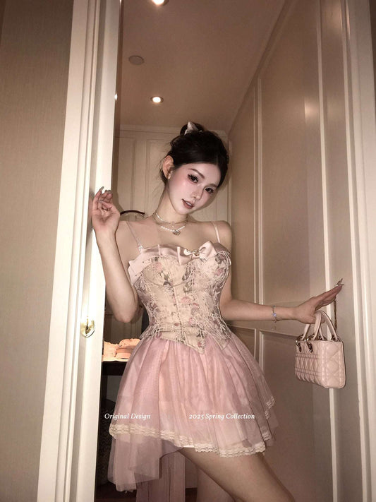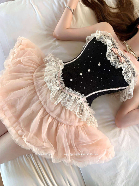 Acacia Secret Antique Doll Black Corset & Pink Skirt Two Piece Set