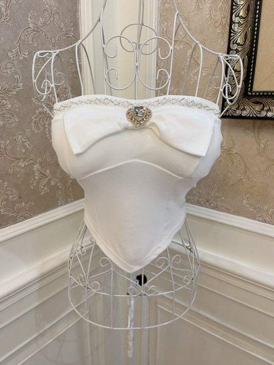 AusverkauftSweetheart Princess Pearl White Camisole Top