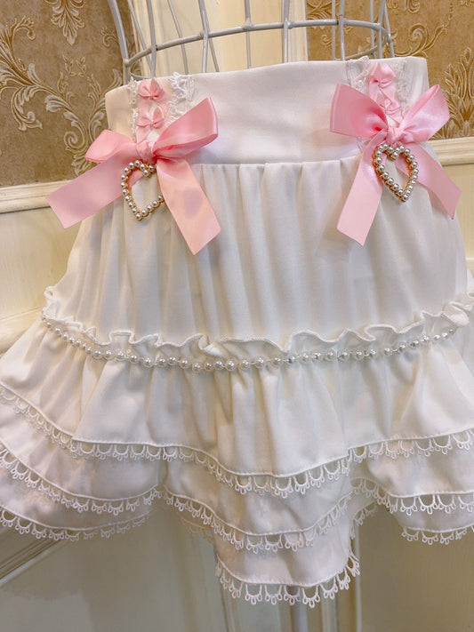 Sweetheart Princess Lace Bow Ruffled Cake White Skirt