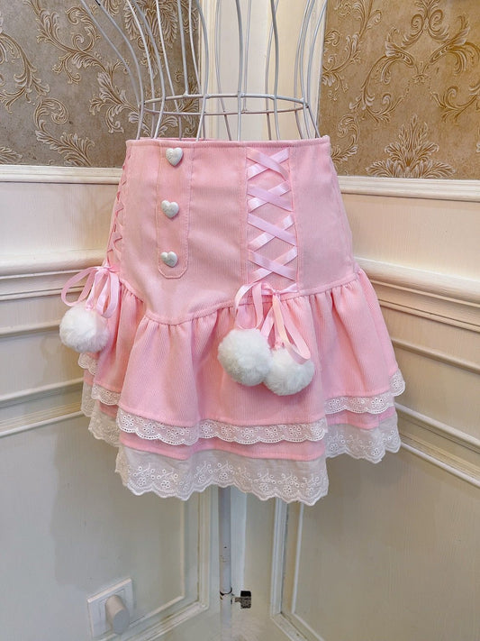 Sweetheart Princess Pink Lace Heart Mini Ruffle Skirt