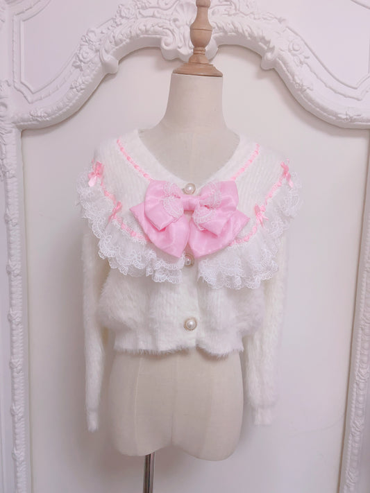 Candy Fairy Winter Angel White Lace Collar Plush Long Sleeve Sweater