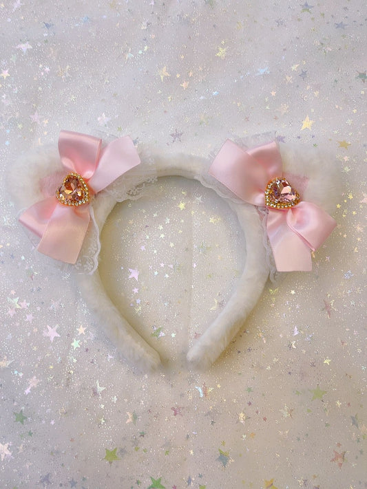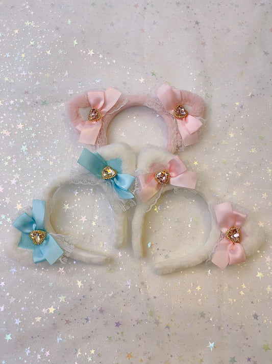Sweetheart Princess Plush Cat Ears Diamond Heart Winter Hairband Headband